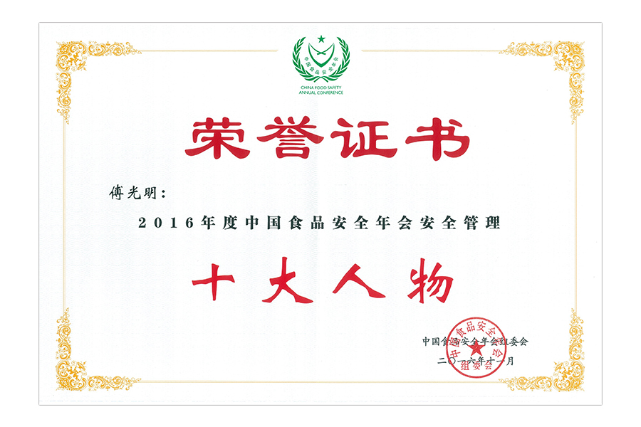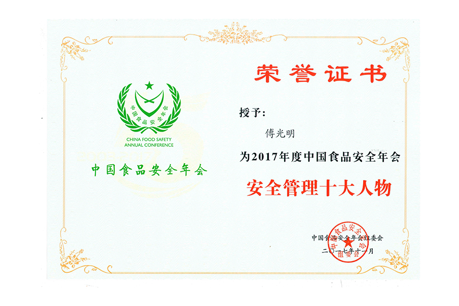 2017Ä꣨¸µ×ÆË¸£©ÖйúʳÎïÇå¾²Äê»á Çå¾²ÖÎÀíÊ®´óÈËÎï.Ö¤Êé