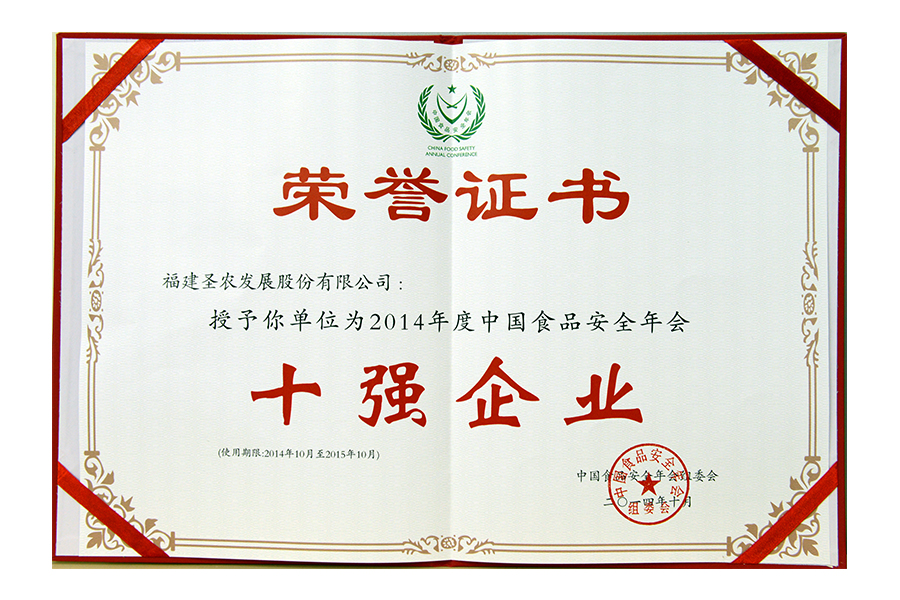 2013Äê¶ÈÖйúʳÎïÇå¾²Äê»áʮǿÆóÒµ