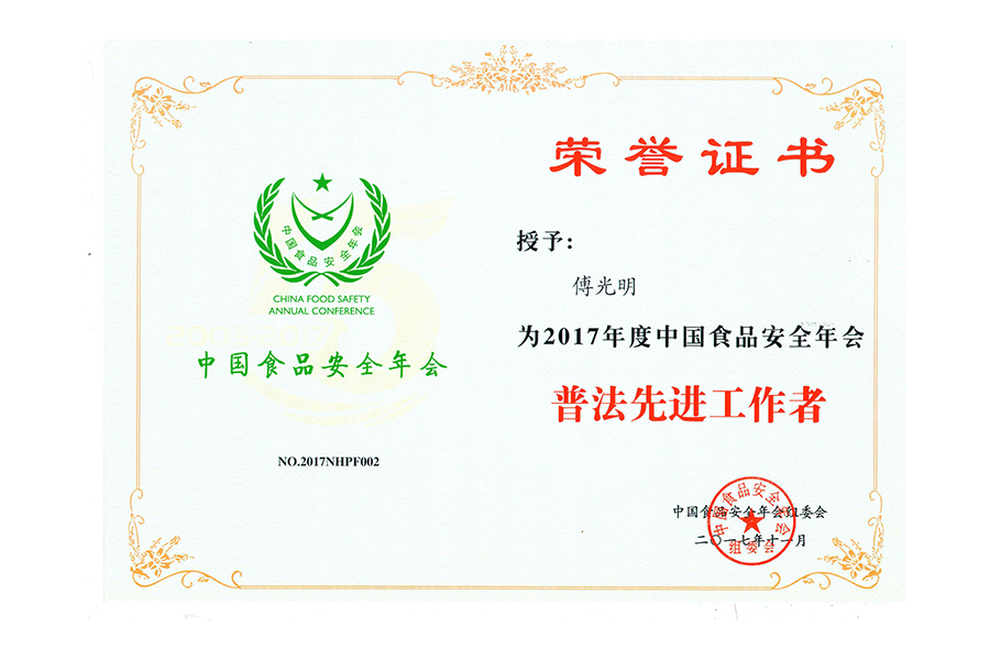 2017Ä꣨¸µ×ÆË¸£©ÖйúʳÎïÇå¾²Äê»á.ÆÕ·¨ÏȽøÊÂÇéÕß.±±¾©.Ö¤Êé