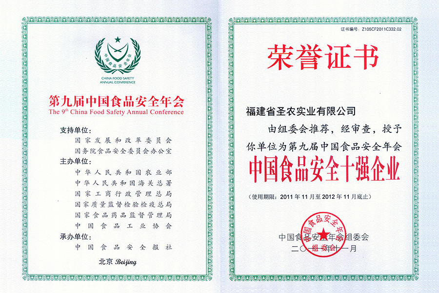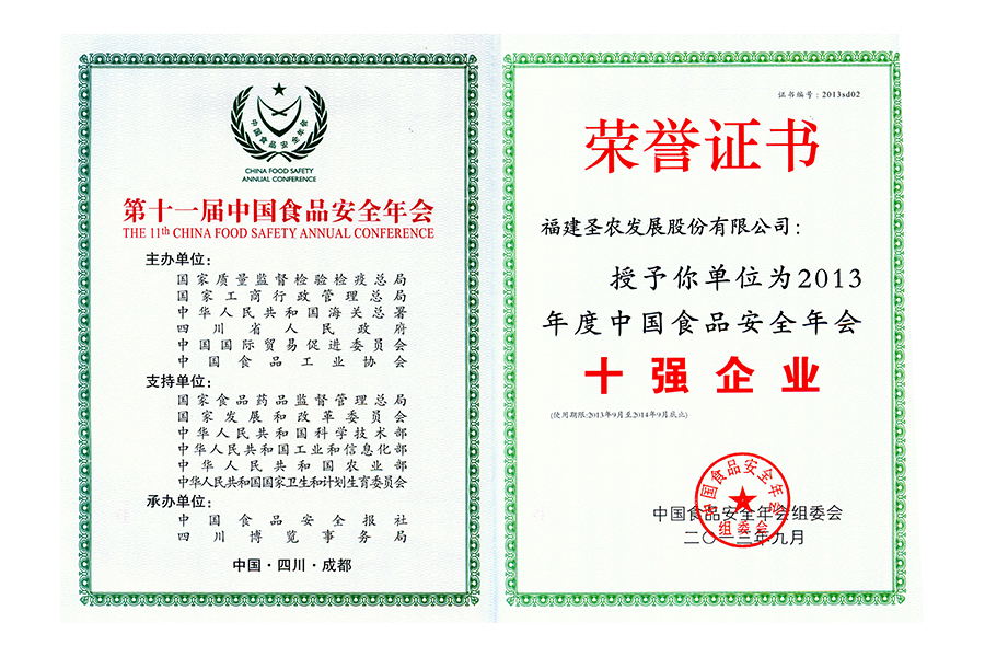 2013Äê¶ÈÖйúʳÎïÇå¾²Äê»áʮǿÆóÒµ