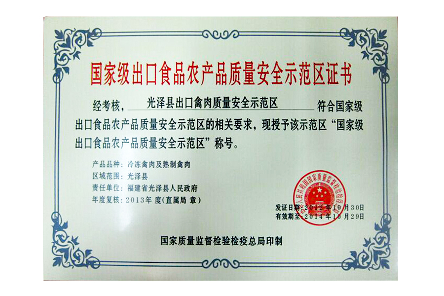 2012Äê¹ú¼Ò¼¶³ö¿ÚʳÎïÅ©²úÆ·ÖÊÁ¿Çå¾²Ê÷Ä£ÇøÖ¤Êé